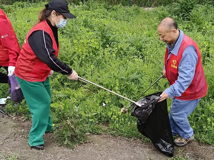 一件件火红的小马甲、一个个忙碌的身影,在青山大堤石化社区段沿线构成了一道靓丽的风景线,志愿者与社区党员以实际行动践行绿色发展理念,助力长江生态保护。