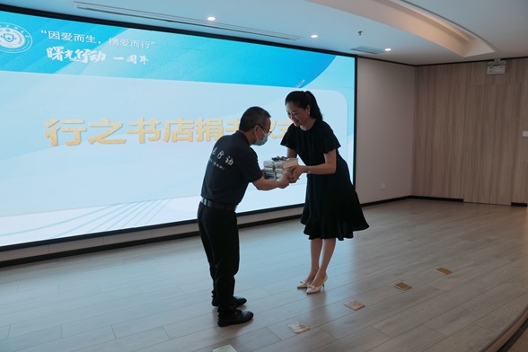 活动现场还举行了行之书店金君芬女士向“曙光行动”项目组捐赠书籍以及周年庆切蛋糕仪式。